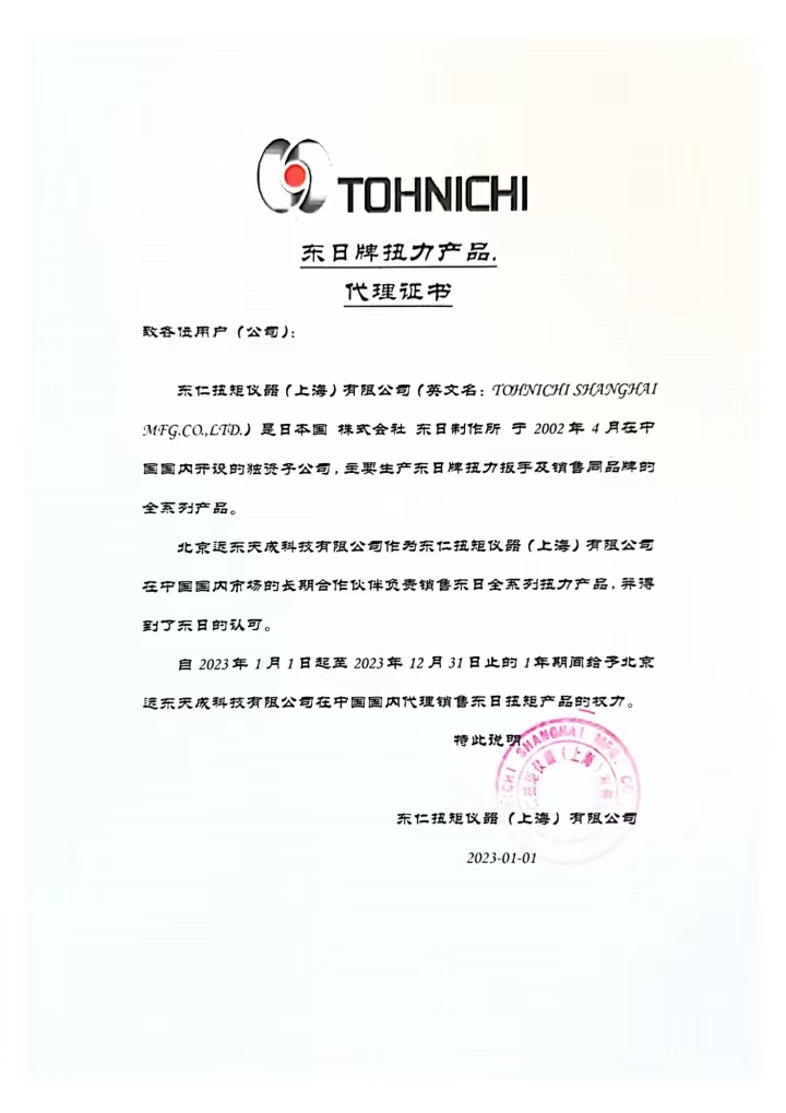 东日扭矩代理证书